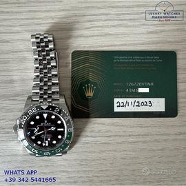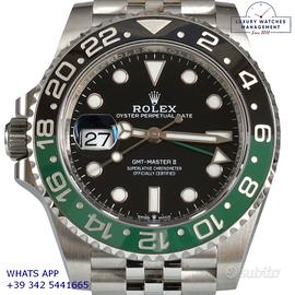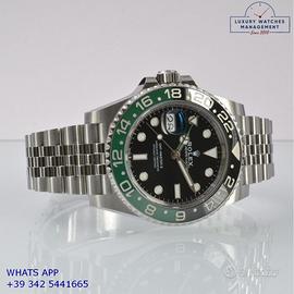 Per conoscere il prezzo e le caratteristiche tecniche dei nostri orologi visita il nostro sito ufficiale: https://lwmitalia.com/it Tutti i nostri orologi vengono verificati e revisionati dal nostro laboratorio specializzato “KeepTime Lab”: https://keeptimelab.com/it/ Rolex GMT Master II Sprite Cerachrom acciaio Oystersteel, anno di produzione 2023, ghiera acciaio Oystersteel bidirezionale con inserto Cerachrom Sprite colore verde e nero, vetro zaffiro antiriflesso con lente ciclope, quadrante colore nero con data indici e sfere al Chromalight, movimento meccanico a carica automatica, bracciale Jubilee acciaio con chiusura deployante Oysterclasp originale Rolex. Orologio originale Rolex in ogni sua parte, mai indossato, nuovo e senza segni di usura, con ancora le plastiche originali Rolex applicate sul bracciale, segni di usura assenti o appena visibili, full set (scatola, accessori vari, garanzia card ufficiale Rolex valida per 5 anni), garanzia/dichiarazione di vendita del nostro negozio valida per 12 mesi.