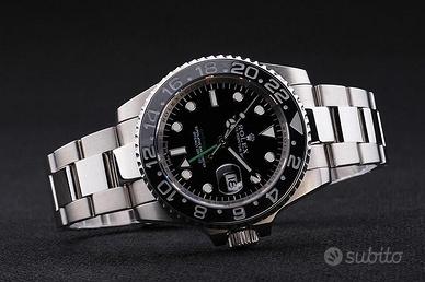 Rolex GMT Master II, Disponibile classico nero,Batman e Sprite . Creato in onore al fuso orario di Greenwich (la sua sigla è proprio GMT) e icona simbolo dell’epoca d’oro dell’aviazione. Questo iconico clone orologio Rolex Batman Jubilee è provvisto di una lancetta 24 ore e di una lunetta girevole con tacchette graduate e consente di visualizzare l’ora in due differenti fusi orari . Orologio con cassa e bracciale in acciaio 316L AISI , ghiera in vera ceramica come nell’originale Rolex, colore della ghiera blu e nero. La scelta ideale di chi vive con classe. Dimensione 40mm Cassain acciaio 316L AISI (l’acciaio più utilizzato in assoluto negli orologi di lusso, resistente alla corrosione) GMT fuso orario perfettamente funzionante ed indipendente come in Rolex originale Meccanismo ETA swiss cal. 2836.2 automatic superior Vetro zaffiro antigraffio ed antiriflesso serigrafato ore 6 Ghiera in vera ceramica come in originale Rolex girevole bi-direzionale Bracciale in acciaio 316L AISI Logo originale Rolex con corona ad ore 12 Quadrante stampato al laser con tecnologia FGJ-9 Numeri di serie del bracciale nell’ ultima maglia, lato interno a contatto con la cassa Meccanismo automatico di blocco del tempo quando la vite con corona viene estratta dal suo alloggiamento (caratteristica standard di tutti i Rolex) Chiusura bracciale Glide-Lock Rolex + sistema anti-rapina con logo Rolex Lente datario magnificatrice ingrandimento 2,5X ORIGINALE (termo-saldata e non incollata) Indici delle ore luminescenti Sistema O-Ring della corona a tenuta stagna Impermeabilità sino a mt100 Punzonatura di cassa, bracciale, corona in originale Rolex Garanzia mesi 12 Box scatola non inclusa nel prezzo (acquistabile a parte)