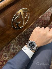 Proponiamo il primo orologio con la ghiera ceramica inventato da Rolex. Una primissima serie conservata magnificamente. Vanta un corredo completissimo, con addirittura il tag con il prezzo dell’epoca. Orologio