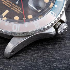 Rolex GMT-Master. Ref.1675. Tropical/Brown. Gilt Dial. Anno 1965. n/s 122XXXX. Cassa in acciaio. Bracciale Jubilee. Carica Automatica. Diametro 40mm. Chiusura Deployante. Vetro Plexiglass. Calibro 1570. Riserva di carica 48. Funzione Data e GMT. Iconica referenza con aspetto fantastico composto da quadrante Brown con variazione di colore regolari ed affascinanti . Lunetta con cambio di colorazione verso celeste e rosa con effetti incredibili in reazione alle luci naturali ed artificiali. Le scritte Gilt perfettamente leggibili completano la bellezza unica di questo orologio.