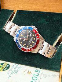 Rolex GMT-Master ref. 16750, unico proprietario, completamente coevo in ogni sua componente e in ottime condizioni. ℹ️Dettagli principali: 🔹Referenza: 16750 🔹Anno: 1984 🔹Movimento: Automatico 🔹Diametro: 40mm 🔹Materiale: Acciaio Oystersteel 🔹Quadrante: nero opaco "matte" dial 🔹Condizioni: Ottime Condizioni 🔹Corredo: Full set con scatola originale e documenti originali ✨ Acquista in totale serenità 🚚 Spedizione tracciata e assicurata in tutta Europa Ogni ordine viaggia in sicurezza fino alla tua porta. 🔍 Qualità garantita Tutti i nostri orologi vengono attentamente controllati e revisionati dal nostro laboratorio di fiducia, per offrirti massima affidabilità e precisione e garantirti autenticità in ogni componente. 🔄 Valutiamo permute Accettiamo orologi da includere nella trattativa di acquisto, previa valutazione delle condizioni e valutazione del valore. 🏬 Visione e ritiro disponibili Puoi venirci a trovare nei nostri orari di apertura oppure fissare un appuntamento dedicato. Non esitare a contattarci per ricevere maggiori informazioni sui nostri orologi in vendita. Visita il nostro sito internet e la nostra pagina Instagram.