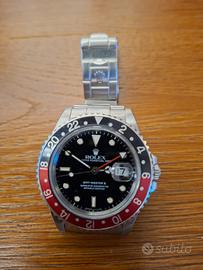 Vendo Rolex GMT-Master "Coke" - anno 1989 - referenza 16710 - seriale L Iconico modello con ghiera bicolore nero/rosso, molto apprezzato da collezionisti e appassionati. Orologio originale, funzionante e in buone condizioni generali, coerenti con l'età. Movimento automatico Rolex GMT con secondo fuso orario. Dettagli: • Marca: Rolex • Modello: GMT-Master • Referenza: 16710 • Anno: 1989 • Ghiera: Coke (nero/rosso) • Movimento: automatico - appena revisionato (dicembre 2025) - con cinturino nuovo del 16710