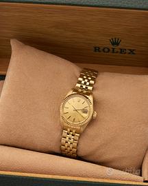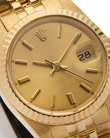 Rolex Lady Datejust 26mm yellow gold 18kt ref 6917; Peso: 58.07; Misura: 13/16; Anno: 1982; Corredo: Scatola originale, Garanzia del rivenditore; Referenza: 6917; Carica: Automatico; Calibro: 2030; Rubini: 28; Colore quadrante: Oro; Corona: Oro giallo; Diametro cassa: 26mm; Ghiera: Oro giallo Materiale cassa: Oro giallo; Materiale cinturino: Oro giallo; Vetro: Plastica Cod: 5203-b
