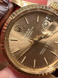 Come da titolo vendo questo Rolex Lady Datejust 6917 in oro in ottime condizioni conservative. Quadrante light brown e cassa in oro giallo, perfettamente funzionante, vetro plexiglas in perfette condizioni. NO GARANZIA ROLEX. Valuto permute con orologi di mio interesse.