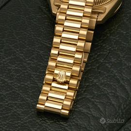 Marca e Modello orologio: Rolex lady datejust president yellow gold diamond emerald bezel 26mm ref 69078 Ref 69078 Calibro 2135 Rubini 29 Anno 1985 Misura Cassa 26 mm Materiale Cassa oro giallo 18kt Materiale Cinturino oro giallo 18kt Tipologia Chiusura deployante Fibbia oro giallo 18kt Vetro zaffiro Peso totale 71,23gr Quadrante champagne Movimento automatico Misura polso da 14 a 15 cm Cod 6739-a Corredo: Scatola Rolex - Garanzia 12 mesi del rivenditore Le foto dell'orologio sono reali e precisamente dell'oggetto che riceverete. I cinturini in pelle posso essere sostituiti su richiesta del cliente a proprio piacimento.L'orologio è certificato e garantito dalla nostra azienda, ed è visibile presso le nostre sedidi Via Giacinto de Vecchi Pieralice 7/13 (zona Valle Aurelia) Roma e di Via degli Orti 34/36 Fiumicino.