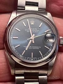 Vendo Rolex Datejust ref 68240 icon quadrante blu bellissimo! Cassa in acciaio da 31 mm , Vetro zaffiro , ghiera liscia , quadrante Blu soleil , corona Rolex ,movimento Rolex a carica automatica perfettamente funzionante , bracciale Oyster ref 78350 No scatola. No garanzia ufficiale Rolex Astenersi PERDITEMPO , AFFARISTI e FURBETTI di quartiere IL PREZZO NON E' TRATTABILE. Consegna presso i miei uffici o mia banca Dichiaro che l' orologio è totalmente originale in ogni sua part