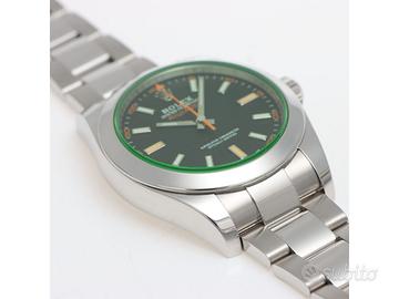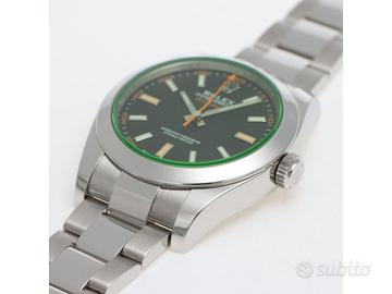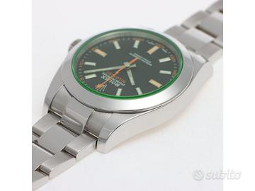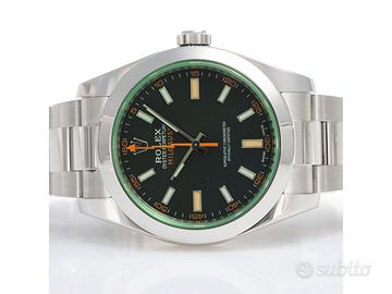 Clover Gioielli pone in vendita Rolex Milgauss Ref. 116400GV realizzato in acciaio, Quadrante nero con vetro verde, Lunetta fissa in acciaio, Cassa di diametro 40 mm, Corona di carica a vite, Bracciale modello Oyster. Orologio in condizioni eccellenti. Garanzia datata 02/2021. Full Set.