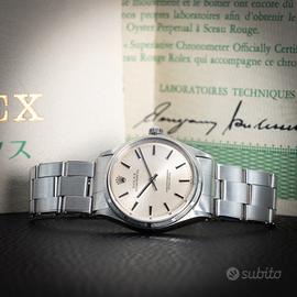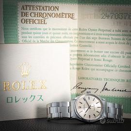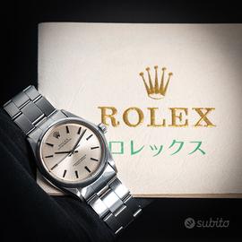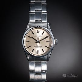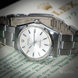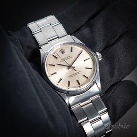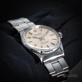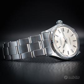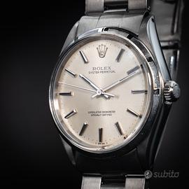 Rolex Oyster Perpetual ref. 1003 - con garanzia In vendita Rolex Oyster Perpetual referenza 1003, uno dei modelli più iconici e intramontabili della maison Rolex. Cassa Oyster in acciaio, diametro 34 mm, linee pulite ed eleganti che rendono questo segnatempo estremamente versatile, perfetto sia per uso quotidiano che per collezione. Quadrante originale dal design classico, movimento automatico Rolex affidabile e preciso. Orologio in ottime condizioni, completamente funzionante e controllato. Bracciale originale incluso -Garanzia inclusa -Movimento automatico originale Rolex -Referenza storica molto apprezzata -Eleganza senza tempo Un vero classico Rolex, ideale per chi cerca un orologio autentico, sobrio e di grande valore nel tempo. Per maggiori informazioni, foto dettagliate o prezzo, contattare in privato.