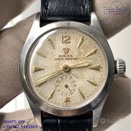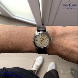 Orologio originale Rolex in ogni sua parte, molto raro, revisionato in buone condizioni, segni di usura o graffi poco visibili o visibili, scatola e garanzia/dichiarazione di vendita nostro negozio valida per 12 mesi.