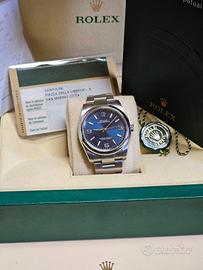 Rolex Oyster Perpetual 36mm, quadrante blu oltremare, perfette condizioni 9/10, MAI lucidato, bracciale teso. Revisionato.