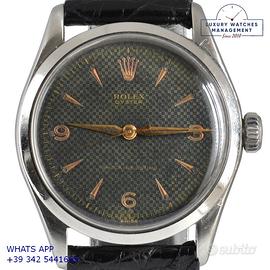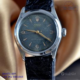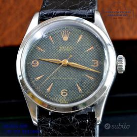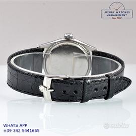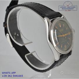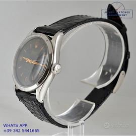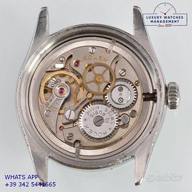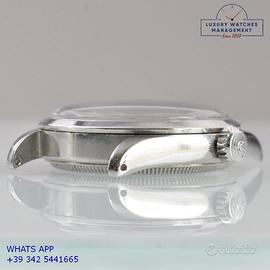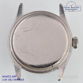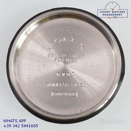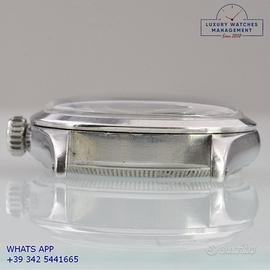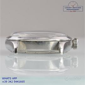 Orologio originale Rolex in ogni sua parte, molto raro, mai lucidato, revisionato in buone condizioni, segni di usura o graffi poco visibili o visibili, scatola originale Rolex dell’epoca, garanzia/dichiarazione di vendita nostro negozio valida per mesi 12.