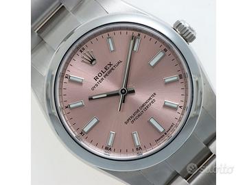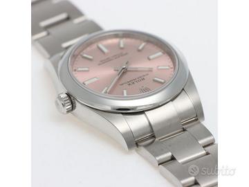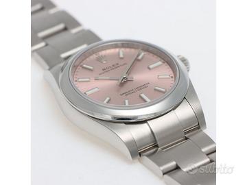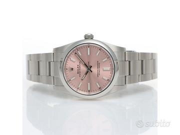 Clover Gioielli pone in vendita Rolex Oyster Perpetual Ref. 124200 realizzato in acciaio, Quadrante rosa, Lunetta liscia in acciaio, Cassa di diametro 34 mm, Corona di carica a vite, Bracciale modello oyster in acciaio. Orologio in condizioni eccellenti. Garanzia datata 03/2022. Full Set.