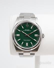 Proponiamo Rolex Oyster Perpetual 124300 con quadrante verde, anno 2023, in condizioni nuovo mai indossato, completo di full set originale Rolex.