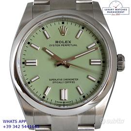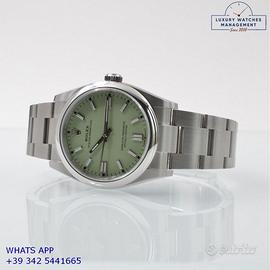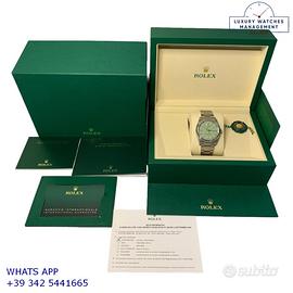 Per conoscere il prezzo e le caratteristiche tecniche dei nostri orologi visita il nostro sito ufficiale: https://lwmitalia.com/it Tutti i nostri orologi vengono verificati e revisionati dal nostro laboratorio specializzato “KeepTime Lab”: https://keeptimelab.com/it/ Rolex Oyster Perpetual 126000 acciaio Oystersteel, anno di produzione 2026, ghiera acciaio Oystersteel liscia bombata, vetro zaffiro antiriflesso, quadrante colore pistacchio con indici e sfere al Chromalight, movimento meccanico a carica automatica, bracciale Oyster acciaio Oystersteel con chiusura deployante Oysterclasp originale Rolex. Orologio Rolex originale in ogni sua parte, mai indossato, nuovo e senza segni di usura, full set (scatola, accessori vari, garanzia card ufficiale Rolex valida 5 anni), garanzia/dichiarazione di vendita nostro negozio valida per 12 mesi.
