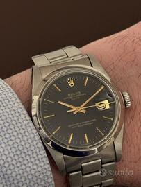 Rolex Oyster Perpetual Date ref. 1500 con quadrante Sigma originale. Cassa 34mm in acciaio, proporzioni classiche e molto eleganti. Movimento automatico preciso e affidabile. Orologio solo testa (no scatola, no garanzia). Il quadrante Sigma lo rende una configurazione ricercata tra i collezionisti di vintage Rolex. Condizioni generali ottime, bracciale morbido ma in condizioni coerenti con l'etá. Non scambio. consegna a mano.