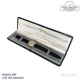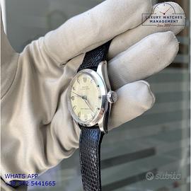 Orologio Rolex originale in ogni sua parte, molto raro, revisionato in buone condizioni, segni di usura o graffi poco visibili o visibili, scatola originale Rolex dell’epoca, garanzia/dichiarazione di vendita nostro negozio valida per 12 mesi.