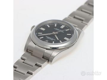 Clover Gioielli pone in vendita Rolex Oyster Perpetual Ref. 116000 realizzato in acciaio, Quadrante nero, Lunetta fissa liscia in acciaio, Cassa di diametro 36mm, Corona di carica a vite. Bracciale modello oyster in acciaio. Orologio in condizioni eccellenti. Full Set. Anno 2020. Garanzia card verde. Revisionato internamente a Marzo 2026. L'orologio è accompagnato da scatola e garanzia ufficiale Rolex oltre al nostro certificato fotografico valido 12 mesi che ne garantisce il buon funzionamento, l'autenticità e la lecita provenienza. Gli orologi sono tutti visionabili su appuntamento presso la nostra Boutique. TERMINI E CONDIZIONI Si ricorda che sono esclusi dalla nostra garanzia della durata di 12 mesi il deterioramento dovuto a usura e danni causati da un uso improprio e/o da trattamento inadeguato, perdita e furto oltre a interventi effettuati da terzi non autorizzati. Il pagamento di eventuali dazi doganali è a carico del cliente.