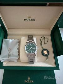 rolex oyster perpetual 126000, 36mm quadrante verde acquistato nuovo a luglio 2025 presso orologieria luigi verga di milano full set, completo di scatola e garanzia ufficiale NO PERMUTE