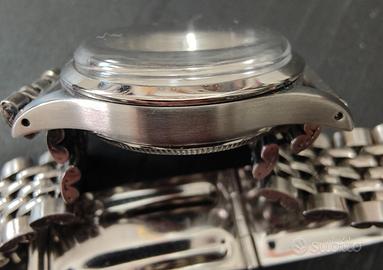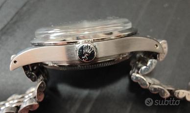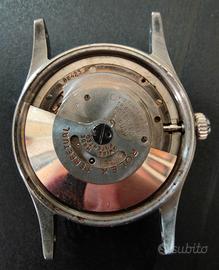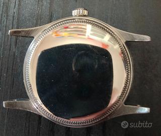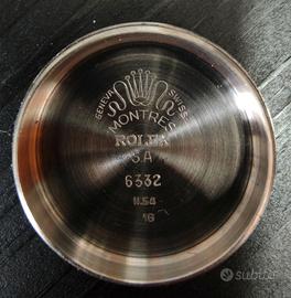 Vendo COMPLETAMENTE ORIGINALE E COEVO, Orologio automatico Rolex 6332 Oyster Perpetual con cassa impermeabile da 34mm. Il Rolex ref. 6332 ha una cassa Oyster unica e insolita con anse lucidate e lati spazzolati. Alcuni di questi primi orologi Rolex 6332 avevano il logo 'Deep Sea' sul quadrante, probabilmente grazie alla altissima impermeabilità che l'orologio aveva quel tempo. Infatti i primi orologi Rolex sub entrarono in produzione circa nello stesso periodo, nel 1953. Questo modello Rolex 6332 può essere considerato molto raro, visto che è stato prodotto solo per pochi anni e la sua condizione è completamente originale. La cassa dell'orologio misura 34mm senza la corona. Cassa marcata Brevet e corona originale Brevet. Le condizioni di questo Rolex sono molto buone, considerato i circa 70 anni, e soprattutto, completamente originali. La cassa è stata leggermente lucidata per togliere i microsegnetti, ma è ancora piena ed i numeri di referenza e di serie sono chiaramente visibili. All'interno c’è un calibro a260 movimento usato anche per molti ovetti, ed è perfettamente funzionante, pur non essendo stato revisionato di recente. Ha un quadrante particolare, a gradini senza il lume su lancette e quadrante , e pare che la maggior parte di questi orologi sia stata venduta in Giappone a causa delle normative governative contro il radio e altri materiali luminosi utilizzati dai produttori di orologi negli anni '50. L'assenza di radio lo rende sicuro per l'uso quotidiano, rispetto agli orologi della stessa epoca contenenti materiali pericolosi, e che hanno causato macchie ai quadranti. Vendo solo testa ma regalo un cinturino in coccodrillo oppure in acciaio chicchi di mais non marcato. Vedo ad Euro 2300 con metodica da concordare o con sistema TuttoSubito. Non rispondo ad anonimi e a collezionisti di foto