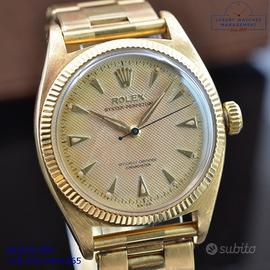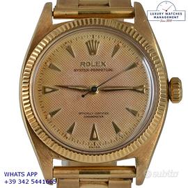 Orologio Rolex originale in tutte le sue parti, molto raro, revisionato in buone condizioni, segni di usura o graffi poco visibili o visibili, scatola originale Rolex dell’epoca, garanzia/dichiarazione di vendita nostro negozio valida per 12 mesi.