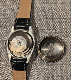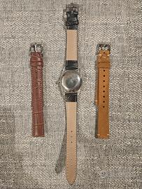 Orologio ereditato da mio nonno, custodito attentamente e in buono stato di conservazione: presenta leggeri graffi dovuti all'età, meccanismo marciante e revisionato 1 anno fa, complessivamente tenuto più che bene, vendo causa inutilizzo..
