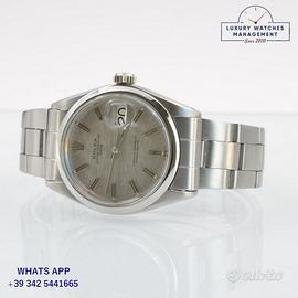 Per conoscere il prezzo e le caratteristiche tecniche dei nostri orologi visita il nostro sito ufficiale: https://lwmitalia.com/it Tutti i nostri orologi vengono verificati e revisionati dal nostro laboratorio specializzato “KeepTime Lab”: https://keeptimelab.com/it/ Rolex Oyster Perpetual Date acciaio, anno di produzione 1971, ghiera acciaio liscia, vetro plastica bombato con lente cyclope, raro quadrante mosaico colore argento con data indici e sfere al trizio originale Rolex dell’epoca, movimento meccanico a carica automatica, bracciale Oyster acciaio a maglie ripiegate con chiusura deployante originale Rolex. Orologio originale Rolex in ogni sua parte, revisionato in ottime condizioni, segni di usura assenti o appena visibili, full set (scatola e garanzia traforata originale Rolex dell’epoca), garanzia/dichiarazione di vendita nostro negozio valida per 12 mesi.