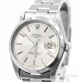 Rolex Oyster Perpetual Date ref. 1500 con cassa in acciaio da 34 mm e peso complessivo di 89,4 grammi, prodotto nel 1980.