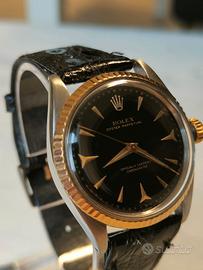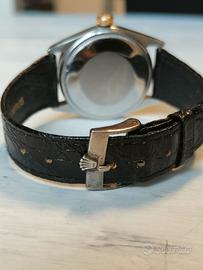 - Descrizione - Rolex - Oyster Perpetual - Uomo - 1960-1969 Vi presentiamo unRolex Oyster Perpetual 34 mmAnteprima Rolex - Oyster Perpetual - Senza Prezzo di Riserva - Uomo - 1960-1969 Descrizione Rolex - Oyster Perpetual - Senza Prezzo di Riserva - Uomo - 1960-1969 Automatico - Acciaio, Oro Dear Bidder Please note, you are bidding on a customised Rolex watch. By definition, this is a Rolex watch with the addition of customised or aftermarket parts. Customisations can include modifications to the watch case, hands, or bezel (for example the addition of diamonds), or artwork and designs to the watch dial. In the case of watch dials, these can be either customised original dials, or aftermarket manufactured dials. These modifications are common within the luxury watch sector, particularly with Rolex watches. We ask sellers to mention any known modifications in the description. It should be noted that in certain circumstances Rolex could decline servicing or repairs to watches modified without their express permission. - Vi presentiamo un Rolex Oyster Perpetual - Casa 34 mm - La cassa da seriale e' del 1965/66 il quadrante e' della ref 6547 Acciaio e oro , combinato con il look vintage di un orologio con quasi 70 anni, conferisce al segnatempo una eleganza e una raffinatezza unica - Per non parlare del quadrante, che monta degli indici davvero spettacolari. Rispettivamente alle ore 3,6 e 9 infatti, gli indici in oro rosa sono a forma di dente di squalo; La loro tridimensionalità, unita a quella degli altri indici, contribuisce a regalare un effetto di rilievo al quadrante color Nero Automatico Calibro 1030 25 pietre Fabia originale Rolex Per maggiori informazioni disponibile anche sul WhatsApp 3246153187 Andrea Prezzo 4900 Solo persone veramente interessate