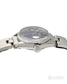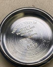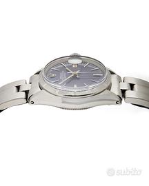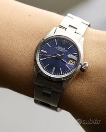 Rolex Oyster Perpetual Lady Date 26 mm ref 6519 Peso: 47.42 gr Misura: 14/20 cm Anno: 1967 Corredo: Scatola originale, Garanzia OroFirst 12 mesi Referenza: 6519 Carica: Automatico Calibro: 2030 Rubini: 28 Colore quadrante: Blu Corona: Acciaio Diametro cassa: 26mm Ghiera: Acciaio Materiale cassa: Acciaio Materiale cinturino: Acciaio Vetro: Plastica Cod:6708-a