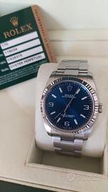 Rolex oyster perpetual fondo blu, ghiera in oro bianco
