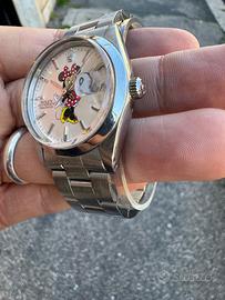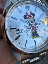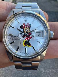 🔹 Quadrante: personalizzato stile “Minnie”, molto raro, con scritte ROLEX OYSTERDATE e data a ore 3