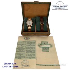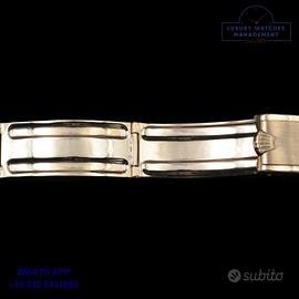 Orologio originale Rolex in ogni sua parte, molto raro di grande interesse collezionistico, revisionato in ottime condizioni, segni di usura assenti o appena visibili, quadrante bicolore con leggera patina fiorita del tempo, full set (rara scatola Rolex, garanzia concessionario Italia originale Rolex dell’epoca), technical expertise of authenticity “myWatch expertise by KeepTime Lab”, warranty/declaration of sale our shop valid 12 months.