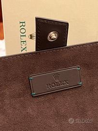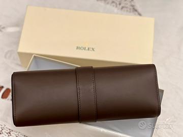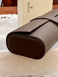 Portaorologi Rolex, nuovo mai utilizzato con scatola oroginale. In pelle marrone e panno in camoscio per coprire gli orologi. Capienza per 4-5 orologi (dipende dalla misura della cassa). Oggetto originale!
