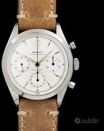 Rolex Chronograph. Pre Daytona Oyster Ref. 6238. White Dial. First Series. Anno 1962. 36mm. Cassa in acciaio. Cinturino in pelle. Vetro Plexiglass. Carica manuale. Calibro Valjoux 72B. Chiusura Deployante. Questo esemplare in particolare, risalente al 1962, è uno dei primissimi prodotti, arrivato ad oggi, in condizioni eccellenti. La referenza 6238 funge da ponte tra i cronografi Rolex dal design tradizionale e le loro controparti moderne, che presto avrebbero caratterizzato l'iconica scritta "Daytona"