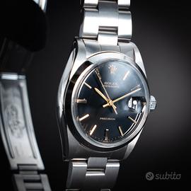 Proponiamo in vendita un elegante Rolex Precision referenza 6694, modello classico e intramontabile della maison Rolex, apprezzato per la sua semplicità raffinata e l’estrema versatilità. L’orologio presenta un raffinato quadrante nero con indici e sfere in oro, che donano un contrasto deciso e una leggibilità eccellente. Completa il tutto il bracciale Oyster, simbolo di robustezza e comfort, perfettamente in linea con l’estetica senza tempo del modello. Grazie al suo design pulito ed essenziale, questo segnatempo è ideale sia per un utilizzo quotidiano che per collezionisti alla ricerca di un Rolex vintage dal fascino autentico. Dotazione: * Solo orologio * Nostro certificato di autenticità * Fattura di vendita Garanzia: * 12 mesi di nostra garanzia sul corretto funzionamento Spedizione assicurata con imballaggio professionale. Per ulteriori informazioni o fotografie aggiuntive non esitate a contattarci in DM.