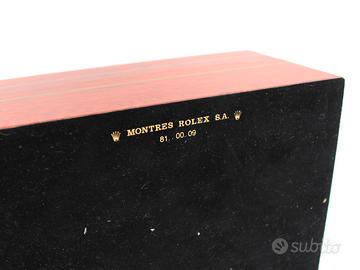 SCATOLA ROLEX REF. 81.00.09 Adatta a Rolex Daytona Zenith Ref. 16518 Scatola Rolex in Radica Completa di Contro scatola Ref. Scatola 81.00.09 dell’Epoca Misura Grande La contro scatola presenta lateralmente il Bollino con referenza Ref. 16518 La scatola è in condizioni eccellenti come si vede in foto. Completa di Contro scatola Verde interno perfetto, non presenta odori di muffa o quant’altro. Conservata in modo manicale. Anello interno rigido Chiusura perfetta Le foto nei dettagli evidenziano l’ottimo stato di conservazione. N°207 DIMENSIONI SCATOLA: 20x15,5x9,5 cm