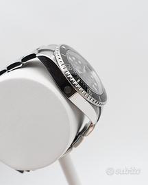 La cassa Oyster da 43 mm in acciaio Oystersteel è in condizioni impeccabili, così come il bracciale Oyster con chiusura di sicurezza e sistema di estensione Glidelock, che permette una regolazione precisa anche sopra la muta da sub.
