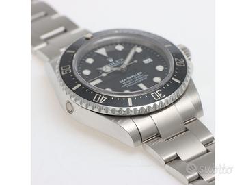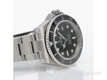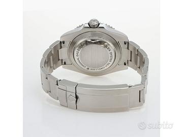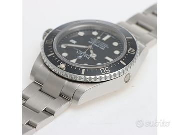 Clover Gioielli pone in vendita Rolex Sea Dweller Ref. 116600 con quadrante nero, cassa di diametro 40 mm in acciaio, corona di carica a vite, Ghiera girevole unidirezionale con inserto in ceramica nera, Bracciale modello Oyster in acciaio. Orologio in condizioni eccellenti. Garanzia datata 05/2016. Full Set.