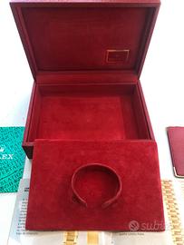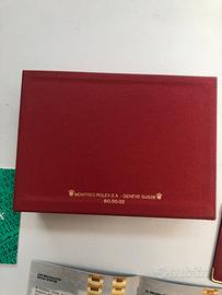Cedo come da foto questa perfetta scatola 60.00.02 in ortime condizioni con inserto in anello insieme al relativo portagaranzia in pelle rossa, libretto cosc traslation e libretto oyster . Tutto in ottime condizioni e originale Rolex. Dichiaro a subito.it che il tutto fa parte della mia collezione privata e sono tutti accessori originali Rolex. Sono disponibile a ulteriori informazioni e foto . Possibilita’ di Ritiro a mano zona di Albiate/Carate Brianza.