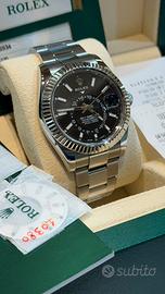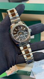 Negozio RC Orologi, situato in Via A. Poerio 22 a Mestre (Venezia), vende Rolex Skydweller 326934 42mm. Referenza fuori produzione. Condizioni top. Completo 2018. Bracciale oyster. Doppio quadrante. Nero montato e bianco a parte, acquistato in concessionario. Ghiera oro bianco. Stupendo. Valuto permute con controllo in negozio, principalmente con Rolex recenti, nuovi o revisionati negli ultimi 24 mesi con documento, completi full set, solo in eccellenti condizioni. Contatto diretto Whatsapp Pagamento solo bonifico bancario, bancomat, carta di credito o contanti nei limiti di legge ( NO “tutto contanti”, no rate, no finanziamenti, no dilazioni, NO TAX FREE ).