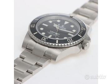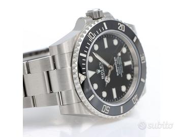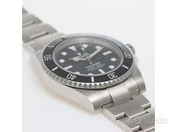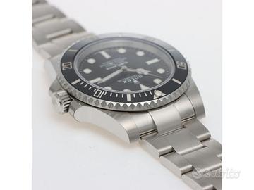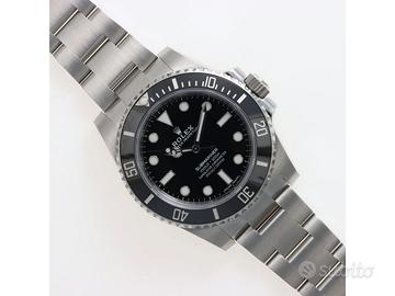 Clover Gioielli pone in vendita Rolex Submariner No Date Ref. 114060 con quadrante nero, cassa di diametro 40 mm in acciaio, corona di carica a vite, Ghiera girevole unidirezionale con inserto in ceramica nera, Bracciale modello Oyster in acciaio. Orologio mai indossato, Anno 2019 e garanzia italiana
