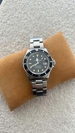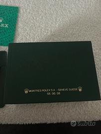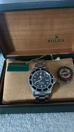Rolex Submariner Date 16610 - Anno 1989 - Unpolished con Corredo Epoca Vendo splendido Rolex Submariner Date, referenza 16610, risalente al 1989. Un esemplare ideale per collezionisti che ricercano l'integrità e la coevità dei componenti piuttosto che un orologio ripristinato a nuovo. Caratteristiche e Condizioni: • Quadrante: Originale dell'epoca al Trizio (scritta T<25 a ore 6) con indici e sfere che presentano una magnifica patina naturale. • Cassa: Mai lucidata (Unpolished). L'orologio mantiene i biselli originali e le proporzioni di fabbrica, con i normali segni del tempo che ne testimoniano l'autenticità e la storia. • Meccanica: Calibro Rolex 3135. L'orologio non è mai stato revisionato né aperto, garantendo l'assoluta integrità dei componenti interni originali (si consiglia una revisione ordinaria se destinato all'uso quotidiano). • Bracciale: Oyster originale con chiusura a scatoletta, coevo per anno e referenza. Corredo incluso (Coevo 1989): L'orologio viene venduto con un set di accessori dell'epoca estremamente raro da trovare completo: • Scatola originale Rolex. • Porta documenti verde Rolex in pelle. • Libretto "Rolex Oyster" (datato 1989). • Libretto verde specifico per Submariner (datato 1989). • Tag verde "Swimpruf" con indicazione referenza. • Tag rosso "Chronometer Certified". • Nota: Garanzia cartacea originale non presente. Note sulla vendita: L'orologio è un pezzo di rara onestà collezionistica, perfetto per chi cerca un "neo-vintage" mai manomesso. Disponibile a qualunque controllo di originalità e lecita provenienza presso centri autorizzati o esperti di fiducia. Prezzo leggermente trattabile solo dopo visione. Massima serietà, non accetto scambi con altri orologi di valore inferiore. Scambio a mano in zona sicura e monitorata.