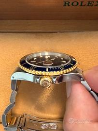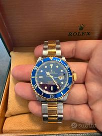 Rolex Submariner 16613 anno 1997, configurazione acciaio/oro con iconico quadrante blu soleil dai riflessi profondi e cangianti.