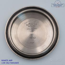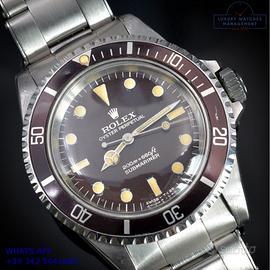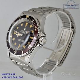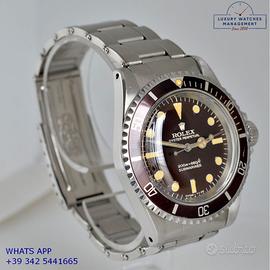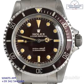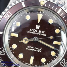 Rolex Submariner 5513 acciaio, anno di produzione 1967, ghiera acciaio bidirezionale inserto alluminio virato colore marrone cioccolato, vetro plastica a cupola, straordinario quadrante “Bart Simpson” lucido colore marrone dorato a grafica argento originale Rolex dell’epoca mai ritoccato o ristampato, indici e sfere al trizio ancora appena luminescente, movimento meccanico a carica automatica, bracciale Oyster acciaio a maglie ripiegate con rivetti chiusura deployante originale Rolex dell’epoca.