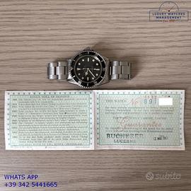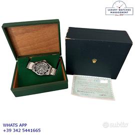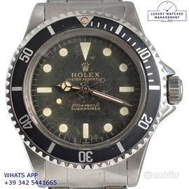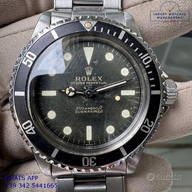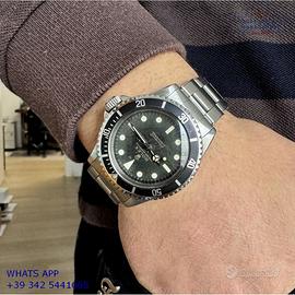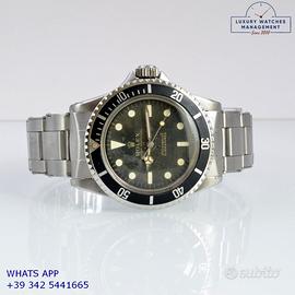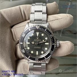 Per conoscere il prezzo e le caratteristiche tecniche dei nostri orologi visita il nostro sito ufficiale: https://lwmitalia.com/it Tutti i nostri orologi vengono verificati e revisionati dal nostro laboratorio specializzato “KeepTime Lab”: https://keeptimelab.com/it/ Rolex Submariner 5513 Cornino acciaio, ultima serie anno di produzione 1962, ghiera acciaio con inserto in alluminio originale Rolex dell'epoca, vetro bombato in plastica, quadrante tropicale underline “meter first” colore nero con grafica dorata, movimento meccanico con rotore di carica automatica a farfalla, bracciale Oyster in acciaio a maglie ripiegate con rivetti, chiusura deployante originale Rolex dell'epoca. Orologio originale Rolex in ogni sua parte, raro esemplare di grande fascino e di elevato valore collezionistico, revisionato in buone condizioni, segni di usura o graffi poco visibili, full set (scatola, vari accessori, garanzia originale Rolex dell'epoca), garanzia/certificato di vendita del nostro negozio valido per 12 mesi.