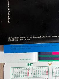 Corredo Rolex in Inglese 1997, scatola e controscatola Rolex, libretti in Inglese 1997 Sub, oyster e traduttore, sncora 300/1000, porta garanzia, calendario 1997/1998. Tutto quello che è in foto verrà consegnato. Tutti gli articoli sono originali Rolex.
