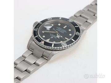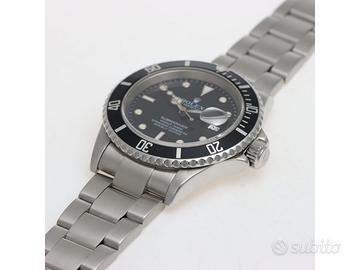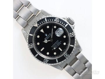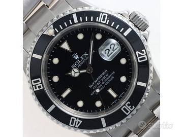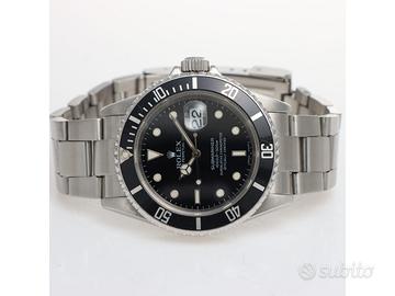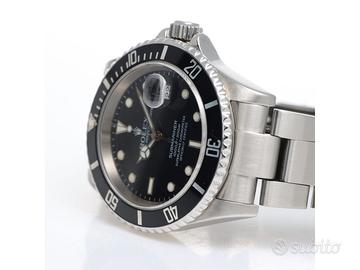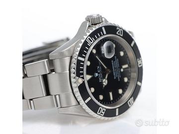 Clover Gioielli pone in vendita Rolex Submariner Date Ref. 16610 con quadrante nero, cassa di diametro 40 mm in acciaio, corona di carica a vite, Ghiera girevole unidirezionale con inserto in alluminio nero, Bracciale modello Oyster in acciaio. Orologio in condizioni buone. Il bracciale mostra segni di usura. Seriale D28XXXX. Anno 2005. Orologio full set, revisionato internamente a Marzo 2026. L'orologio è accompagnato dal suo corredo originale Rolex oltre che dal nostro certificato fotografico valido 12 mesi che ne garantisce il buon funzionamento, l'autenticità e la lecita provenienza. Gli orologi sono tutti visionabili su appuntamento presso la nostra Boutique. TERMINI E CONDIZIONI Si ricorda che sono esclusi dalla nostra garanzia della durata di 12 mesi il deterioramento dovuto a usura e danni causati da un uso improprio e/o da trattamento inadeguato, perdita e furto oltre a interventi effettuati da terzi non autorizzati. Il pagamento di eventuali dazi doganali è a carico del cliente.