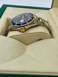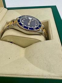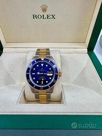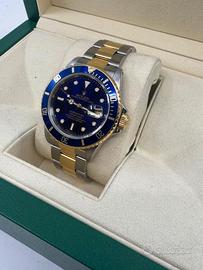 Rolex Submariner Date Numero di referenza 16613 Carica Automatico Materiale della cassa Oro/Acciaio Materiale cinturino Oro/acciaio Anni 90 Condizione Usato (Ottimo) Presenta segni di usura lievissimi, come ad esempio graffi leggeri, ma non percepibili al tatto. Corredo: documenti originali, box Materiale della cassa Oro/Acciaio Diametro 40 mm Impermeabile 30 ATM Materiale lunetta Oro giallo Vetro Vetro zaffiro Quadrante purple Materiale cinturino Oro/acciaio Colore cinturino Oro/acciaio Chiusura Dèployante Preferibile consegna a mano, disponibile a qualsiasi controllo presso gioielleria.