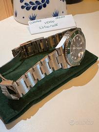 Rolex Submariner Date 126610LV “Starbucks” – Full Steel 41mm Proposto in vendita Rolex Submariner ref. 126610LV, configurazione con lunetta Cerachrom verde e quadrante nero. Esemplare proveniente da collezione privata, mai indossato, in condizioni pari al nuovo (NOS). Orologio perfettamente funzionante, senza segni, con parametri meccanici regolari. Specifiche: * Cassa Oyster 41 mm in acciaio Oystersteel * Lunetta girevole unidirezionale in ceramica verde (Cerachrom) * Quadrante nero con indici Chromalight * Movimento automatico calibro 3235 (72h riserva di carica) * Bracciale Oyster con chiusura Glidelock Nota importante: esemplare senza corredo (no box, no garanzia). Massima trasparenza: disponibili a consegna presso gioielleria, orologeria o esperto di fiducia indicato dal cliente, per qualsiasi verifica di autenticità e conformità. Ideale per chi cerca un 126610LV in condizioni eccellenti a un prezzo competitivo, considerando l’assenza di set completo. Richiesta: €10.500 Disponibile per ulteriori dettagli tecnici, foto ad alta risoluzione e verifiche. Contatto in privato.