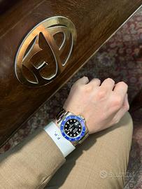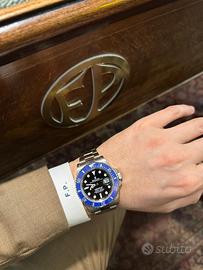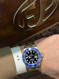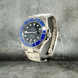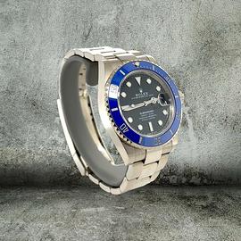 L’ultimo Submariner prodotto da casa Rolex interamente in oro bianco 18kt, con cassa da 41mm e ghiera ceramica Blu. Listino Rolex attuale: 48900 euro.